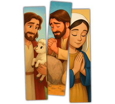Marcadores de páginas com lindas artes cristãs exclusivas, criados para acompanhar seus momentos de leitura, devoção e reflexão, unindo beleza, fé e inspiração em cada detalhe.